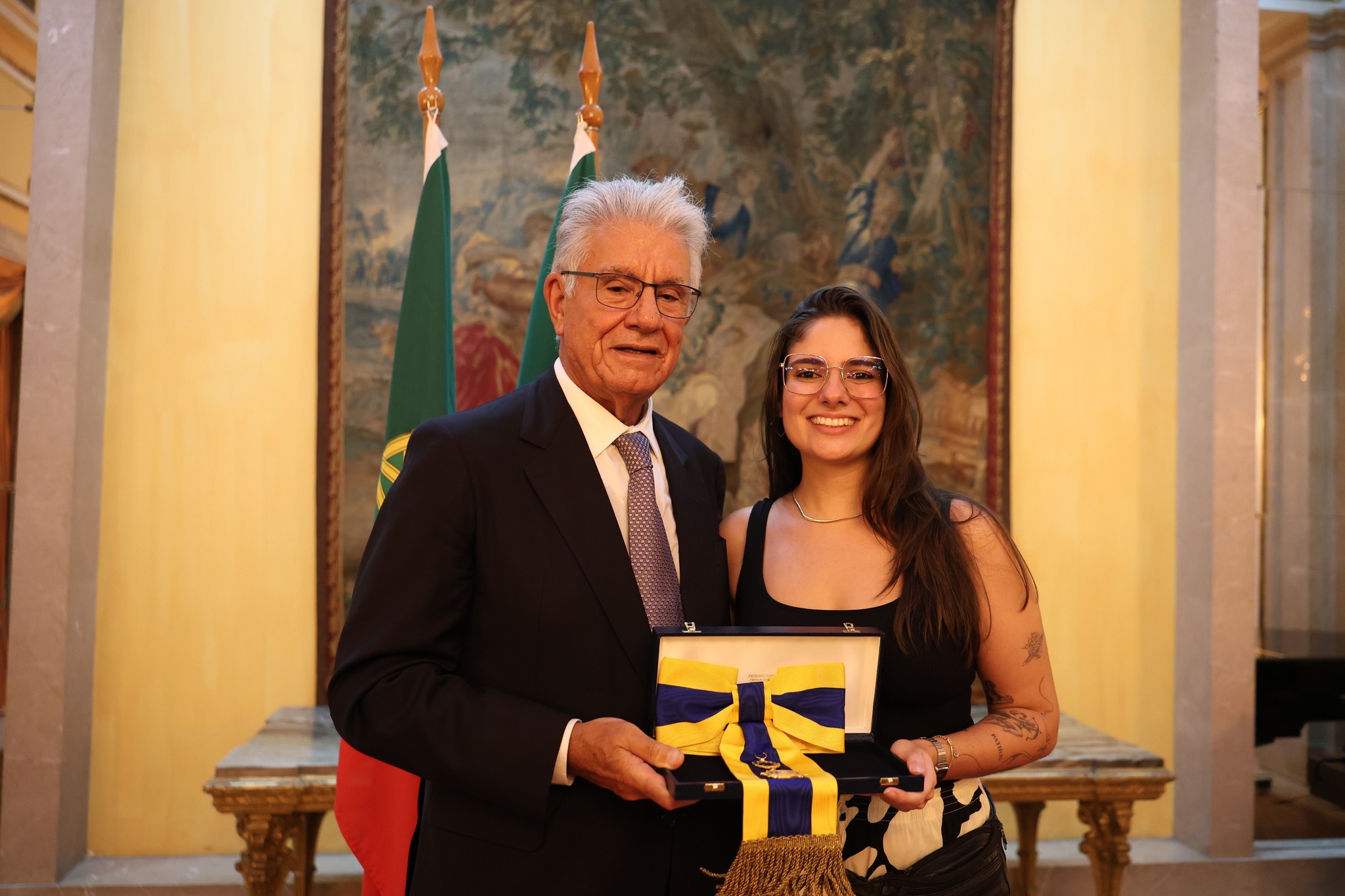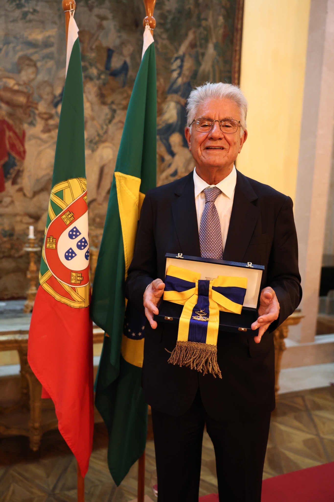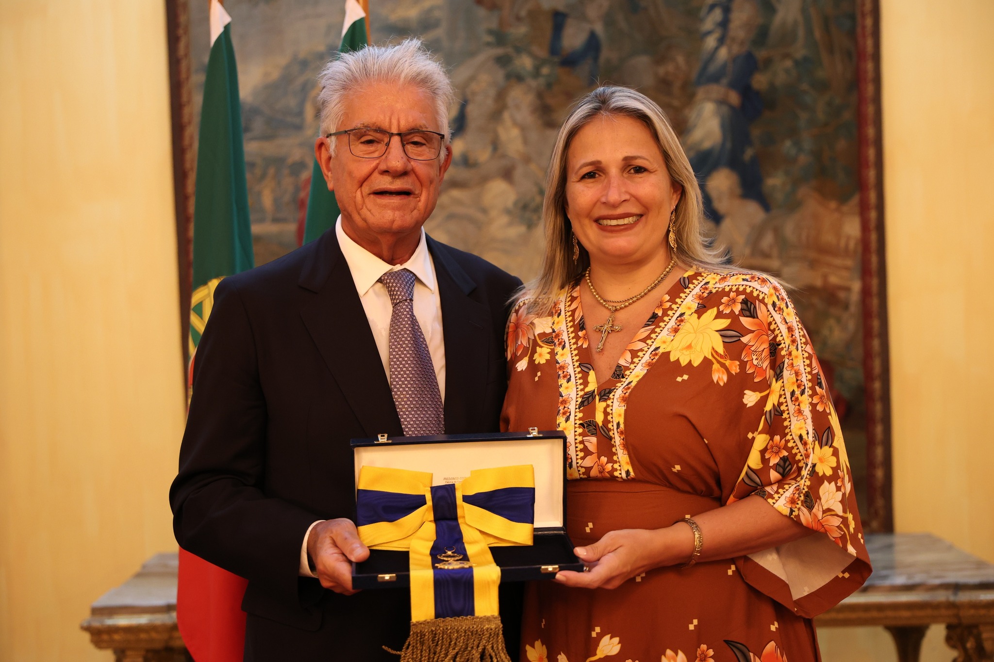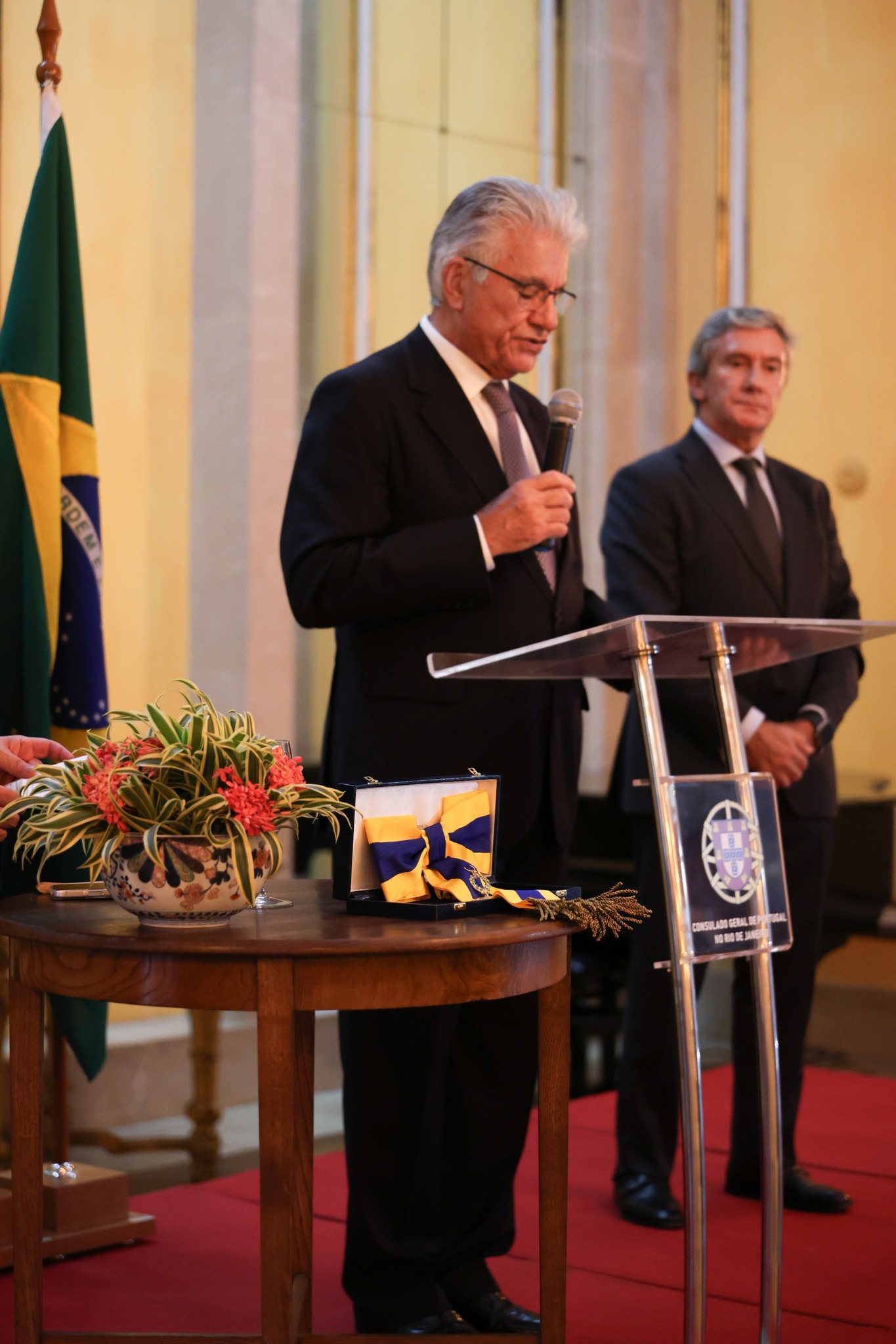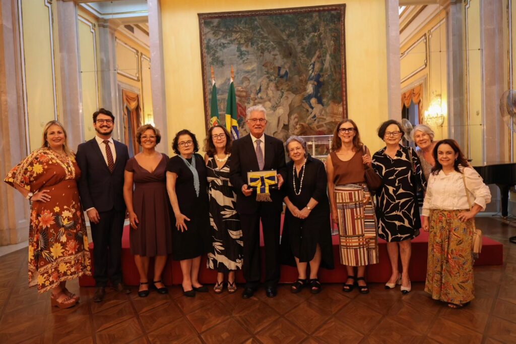 Em nome do Presidente da República Portuguesa, o Embaixador de Portugal no Brasil, Luis Faro Ramos, entregou a insígnia ao Presidente da instituição, destacando o valoroso papel exercido pelo Real Gabinete na promoção da Língua Portuguesa no mundo.